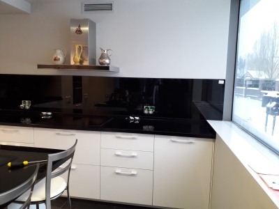 Декоративные панели на мебель отличаются мягким глянцевым блеском. Цветной слой и узор наносятся на обратную сторону стекла, добавляя композиции стильные глянцевые переливы.